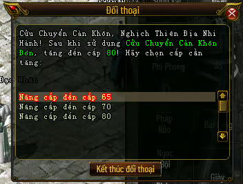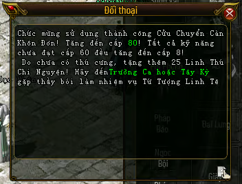 Ngoài ra còn có Càn Khôn Đơn (1 Thông Bảo) dùng trực tiếp thăng lên cấp 45 và học các kỹ năng cơ bản tương ứng lên cấp 4.