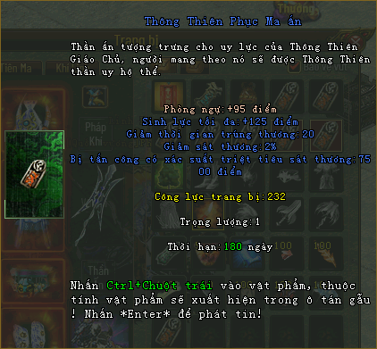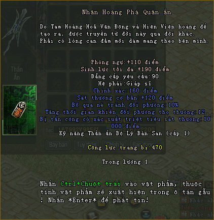 Điểm công trạng dùng để đổi Thần ấn cao cấp, Trang bị Hoàng Kim và các vật phẩm quý hiếm khác tại Âu Thúc Tử.