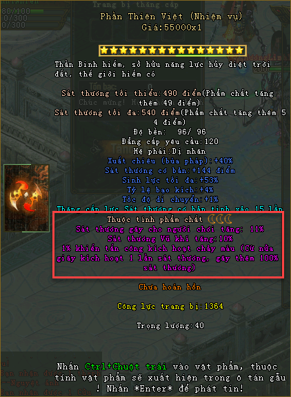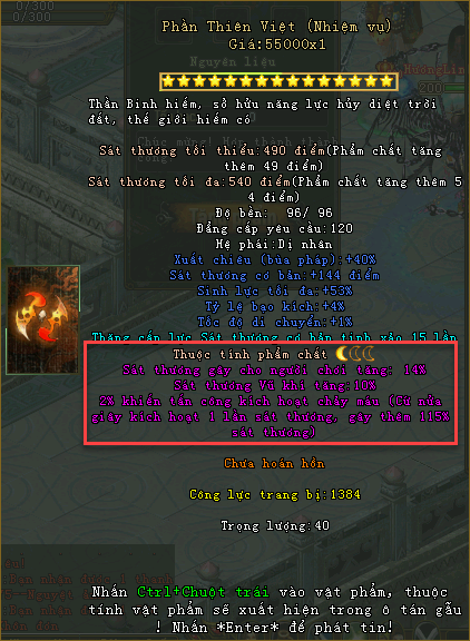 Thuộc tính vũ khí phẩm chất Ám Kim