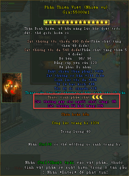 Thuộc tính vũ khí phẩm chất Hoàng Kim