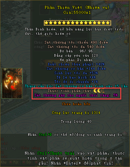 | Vũ khí nguồn (phẩm chất Hoàng Kim +3) |