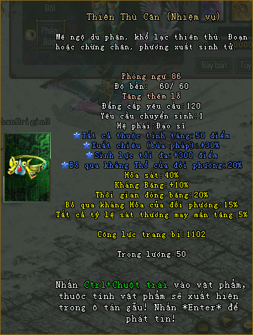 Khi sử dụng 3 trang bị sẽ kích hoạt được 2 dòng thuộc tính ẩn.