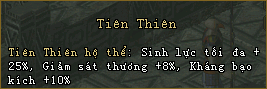 - Nhận được trạng thái Tiên Thiên hộ thể vĩnh viễn.