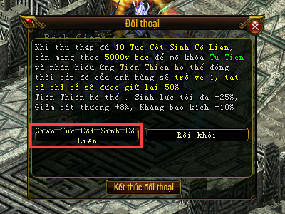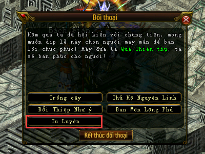Lựa chọn “Tu Luyện” trong hộp thoại trò chuyện.