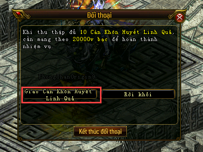 - Bước 6: Thu Thập 10 Càn Khôn Huyết Linh Quả và 20.000 vạn bạc về giao cho Bách Giám.