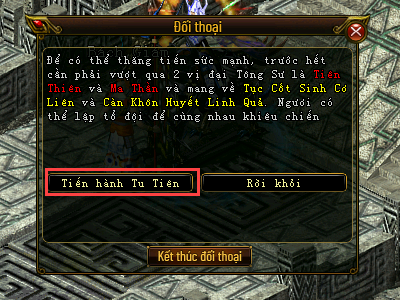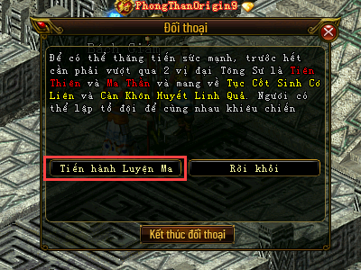 Lựa chọn “Tu Tiên Luyện Ma” trong hộp thoại trò chuyện.
