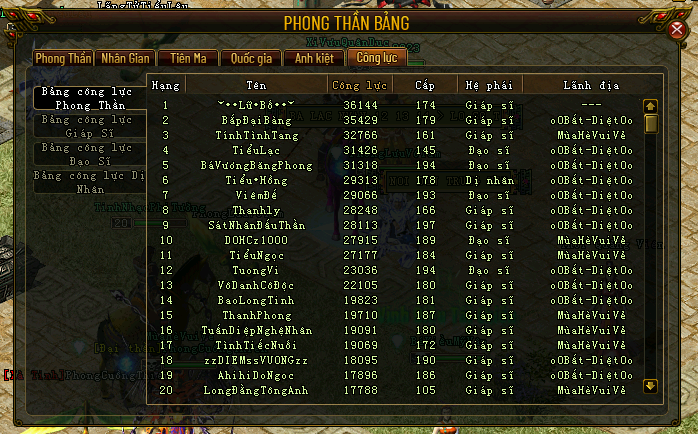 Các anh hùng Top 4-10 có khoảng cách chênh lệch không quá lớn ngoại trừ TiểuLạc và BáVươngBăngPhong 2 người chơi đều có điểm công lực trên 31K, mức lực chiến nằm TOP đầu Phong Thần.