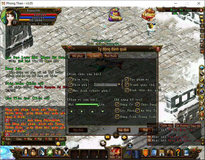 - Tạo phạm vi: Xác định khu vực săn quái, tránh đi lạc và săn nhầm quái.