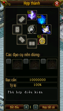 - Bước 2: Đặt các nguyên liệu cần thiết để tiến hành hợp thành trang bị Hoang Kim Hệ Phái.
