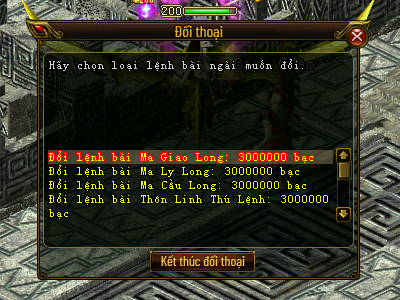 Khi tiếp nhận nhiệm vụ sẽ nhận được 3 lệnh bài gọi Thần Long.