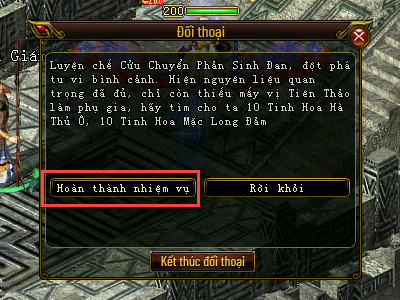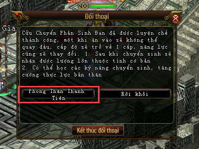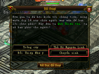 Chức năng: Dùng để trả nhiệm vụ Chuyển sinh.