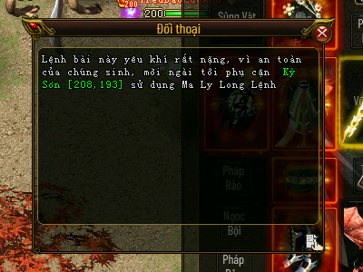 Anh hùng di chuyển đến Kỳ Sơn (208,193) để tiến hành triệu hồi Thần Long.