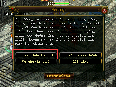 Chọn “Phong Thần Chi Lộ” trong hộp thoại trò chuyện.