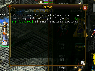 Anh hùng di chuyển đến Kỳ Sơn (208,193) để tiến hành triệu hồi Thôn Linh Thú.