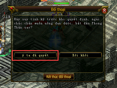 Lựa chọn “ý ta đã quyết” trong hợp thoại trò chuyện để tiến hành Chuyển sinh.