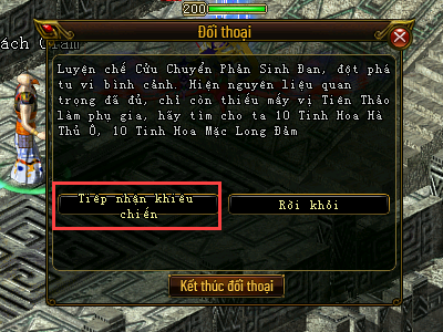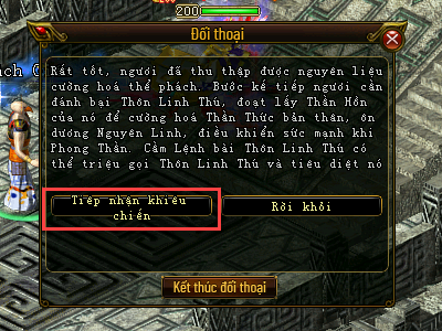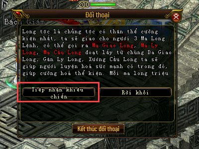 Tiếp tục chọn “Tiếp nhận khiêu chiến” trong hộp thoại để nhận nhiệm vụ mới.