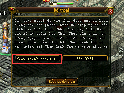 Tiếp nhận nhiệm vụ sẽ nhận được Thôn Linh Thú Lệnh.