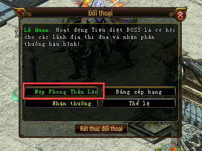 Tại đây lựa chọn “Nộp Phong Thần Lệnh” để tiến hành giao nộp Phong Thần Lệnh.