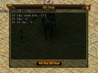 Sau khi gieo hạt, một mầm cây sẽ mọc lên tại vị trí hiện tại của nhân vật, nhấp chuột phải vào mầm hoa anh hùng có thể xem chi tiết số lần chăm bón, số sâu hoặc số cỏ dại đang mọc.