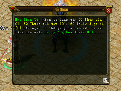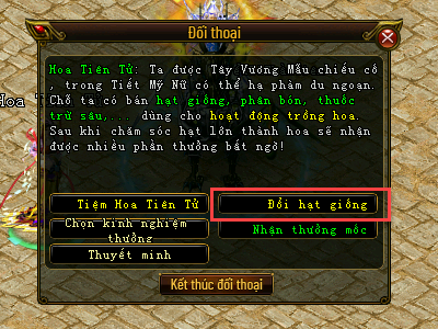 Các anh hùng có thể tới chỗ Hoa Tiên Tử để nhận nhiệm vụ, hoàn thành có thể nhận được 1 Hạt giống Hoa Thiên Điểu