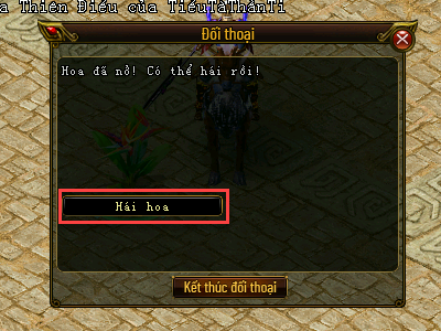 Lúc này anh hùng có thể nhấp chuột vào hoa của mình để hái, lưu ý khi hoa nở chỉ có 3 phút để hái hoa, nếu không hái người chơi khác sẽ có thể hái trộm.