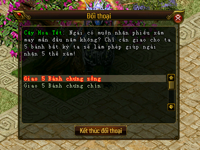 Anh hùng tới chỗ Cây Hoa Tết và giao nộp loại 5 bánh bất kỳ sẽ có cơ hội nhận đc 5 Thẻ Xăm 2025. (Nộp bánh chín chắc chắn nhận được)