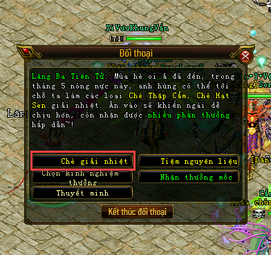 Anh hùng đối thoại với Tiên tử và chọn “Chè giải nhiệt” để bắt đầu