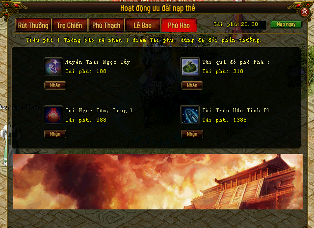 - Tích luỹ điểm tài phú đến mốc nhất định có thể nhận được các phần thưởng Phú Hào.