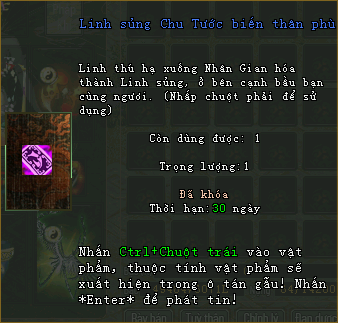 Túi Trấn Hồn Tinh Phách Chu Tước mở ra sẽ nhận được 1 Trấn Hồn Tinh Phách và 1 Linh Sủng Chu Tước biến thân phù.