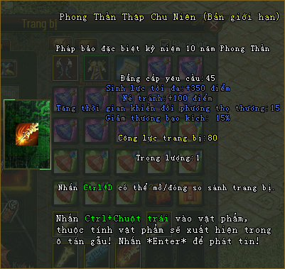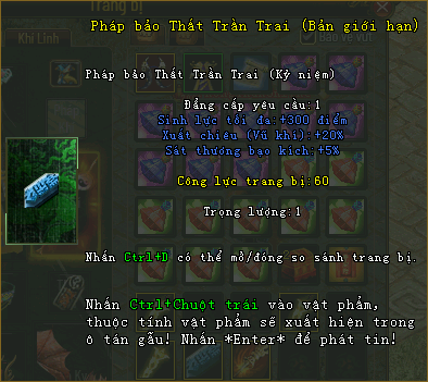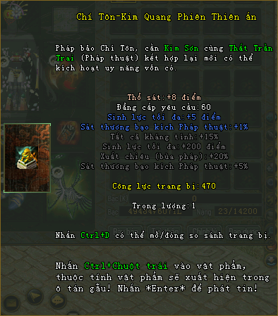 Các loại pháp bảo đặc biệt có thể kết hợp để kích hoạt thành Pháp Bảo Chí Tôn (6 thuộc tính), hãy tìm Linh Bảo Đại Pháp Sư tại Ngọc Hư Cung để tìm hiểu.