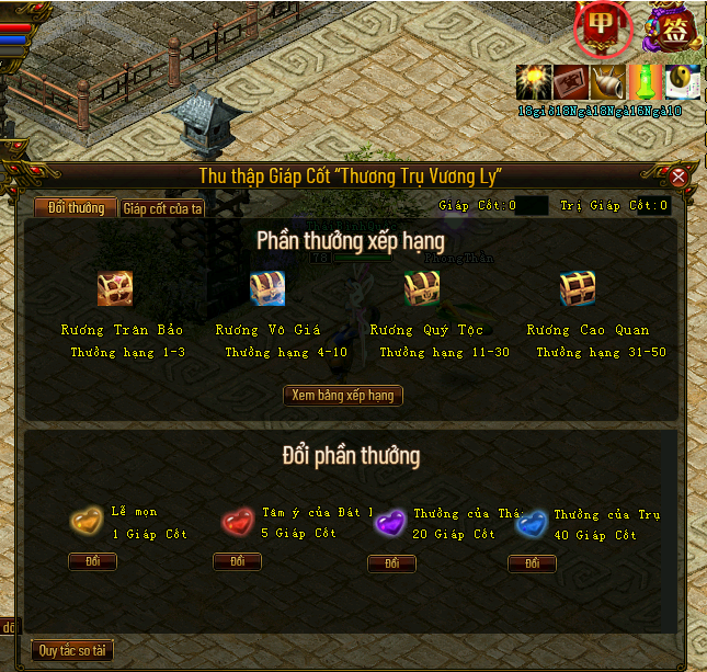 Trong thời gian hoạt động, trò chơi sẽ chia ra các loại hình hành động riêng (Như đánh BOSS, hoàn thành nhiệm vụ nào đó) có thể nhận được Giáp Cốt, Giáp Cốt chia thành 5 phẩm Thường, Ưu Tú, Tinh Chế, Hiếm, Truyền Thuyết.
