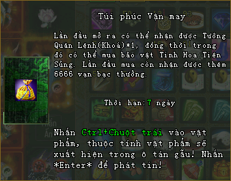 - Mỗi nhân vật mỗi ngày tối đa chỉ có thể nhận được 01 Bảo rương Phúc Vận.